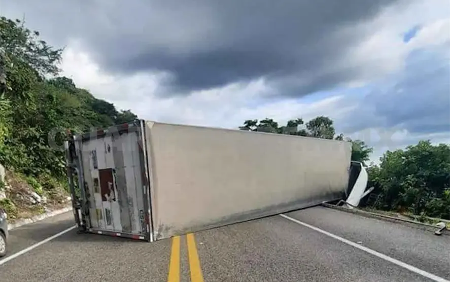 El tráiler presuntamente iba con dirección a Chiapa de Corzo al momento en que el conductor perdió el control y terminó con los neumáticos al aire, quedando atravesado sobre la autopista.