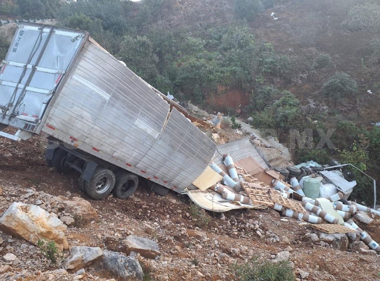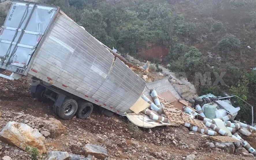 La unidad accidentada transportaba rollos de plástico, cuyo conductor perdió el control de la unidad, lo que ocasionó que saliera de la cinta asfáltica y cayera a un barranco de aproximados 80 metros.