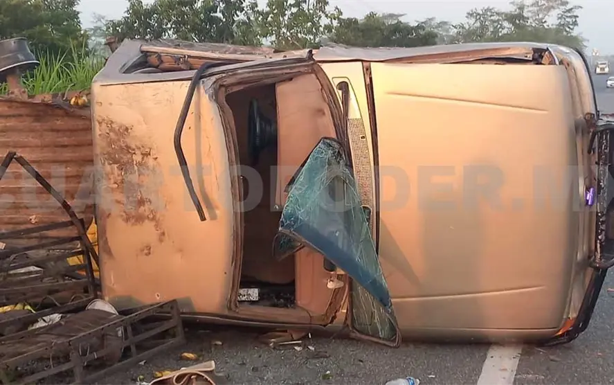 La camioneta quedó casi como pérdida total, al igual que la carga de frutas y verduras, mientras el chofer debido a los golpes y lesiones tuvo que ser trasladado al hospital de Emiliano Zapata, en Tabasco.