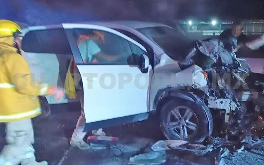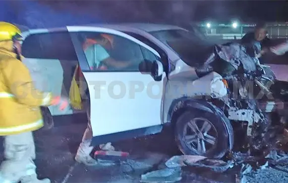 Se dijo que el vehículo Chevrolet Trax, color blanco, tras impactarse contra la motocicleta se incendió, por lo que personal de Protección Civil logró controlar el fuego.