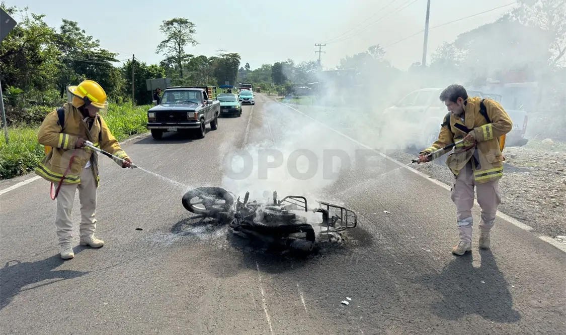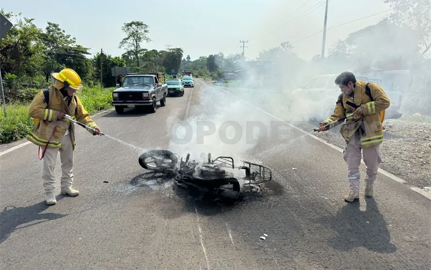 Personal de Protección Civil y de la Guardia Nacional sofocaron el fuego en ambas motocicletas, mientras que paramédicos atendieron al lesionado, aunque no hubo necesidad de trasladarlo a un hospital.