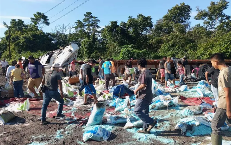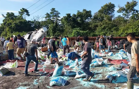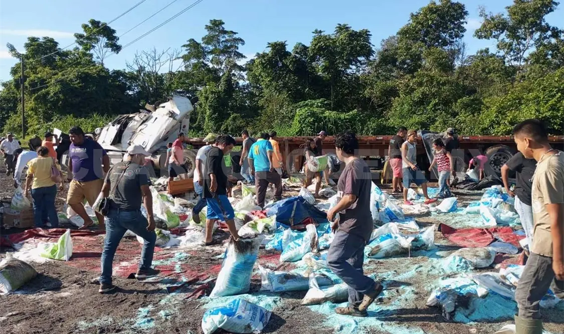 Tras la volcadura de un tráiler en la denominada Curva del Diablo en la demarcación del municipio de Huixtla, el cual quedó despedazado, el saqueo no se hizo esperar ya que grupos de personas se llevaron varias toneladas de fertilizantes.