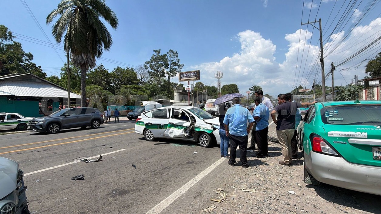 Sobre el tramo carretero Tapachula-Puerto Madero se registró un fuerte choque entre un vehículo particular y un taxi, el cual dejó daños materiales por varias decenas de miles de pesos, aunque afortunadamente sin lesionados.