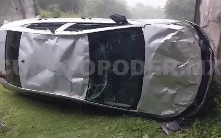 La volcadura ocurrió a la altura del puente “Tzajalucum”, en donde el vehículo color gris cayó, quedando debajo de dicho puente y con las llantas hacia arriba.