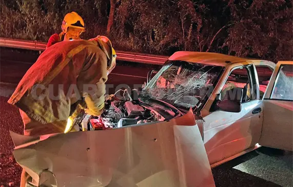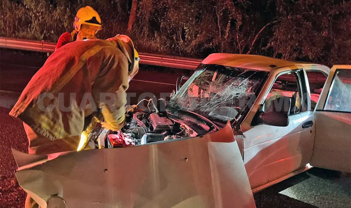 Ahí, se informó que un automóvil de la marca Nissan Tsuru de color blanco se desplazaba presuntamente a exceso de velocidad, por lo que cuando el conductor realizó una mala maniobra perdió el control del volante, estampándose por alcance en la patrulla que se encontraba orillada mientras atendía otro percance.