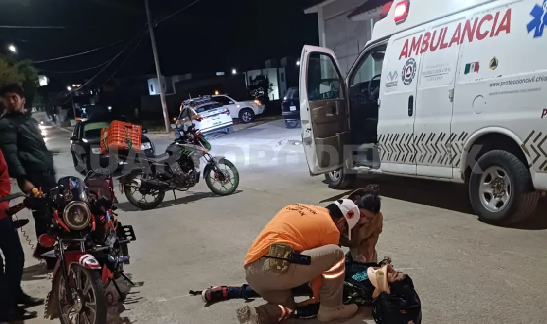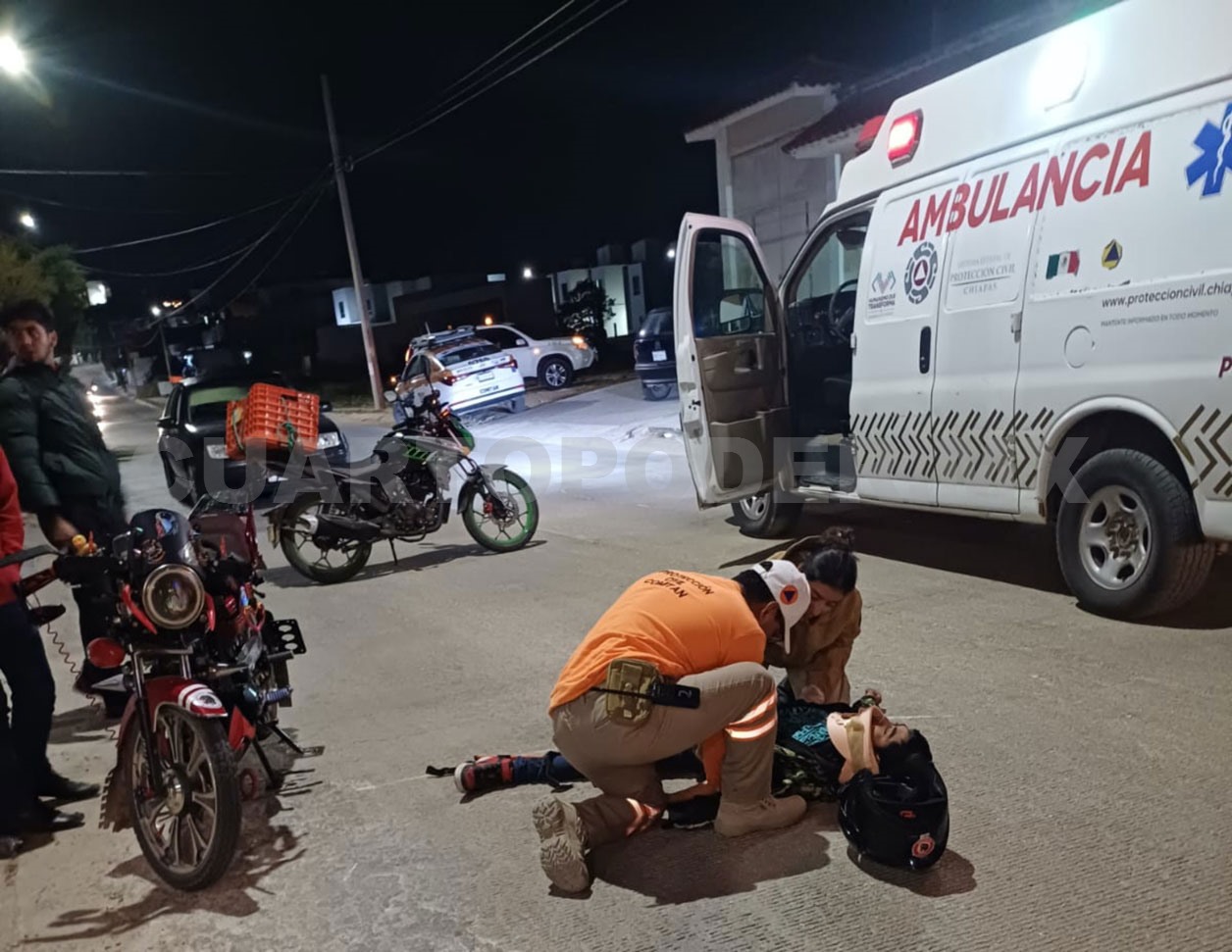 Un par de horas después, en la colonia Valle Balún Canán, un motociclista colisionó contra un automovilista que se pasó el alto sobre la avenida Belisario Domínguez, el cual dejó a un adolescente de 14 años lesionado.