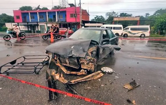 Un fuerte accidente automovilístico ocurrido en el retorno del crucero del ejido Xochiltepec sobre la carretera Tapachula-Huixtla, dejó como saldo cuantiosos daños materiales y varias personas con crisis nerviosa.