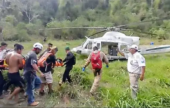Sin embargo, debido a lo sinuoso del acceso a la cueva tuvieron que solicitar el apoyo de una ambulancia aérea para poder sacarlos y trasladarlos al hospital Dr. Jesús Gilberto Gómez Maza de la capital Tuxtla Gutiérrez.