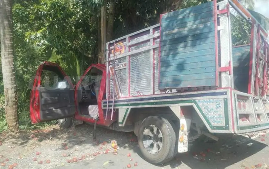 Esto provocó que el conductor perdiera el control y saliera de la carretera a la altura del callejón Morelos, de Tuzantán, quedando impactado contra un árbol.