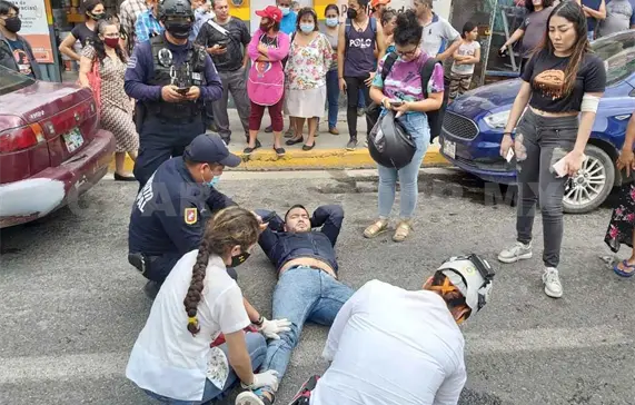 Minutos después paramédicos de Protección Civil Municipal atendieron al herido y lo llevaron a un hospital particular para su atención médica especializada.