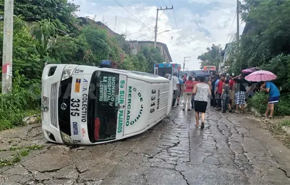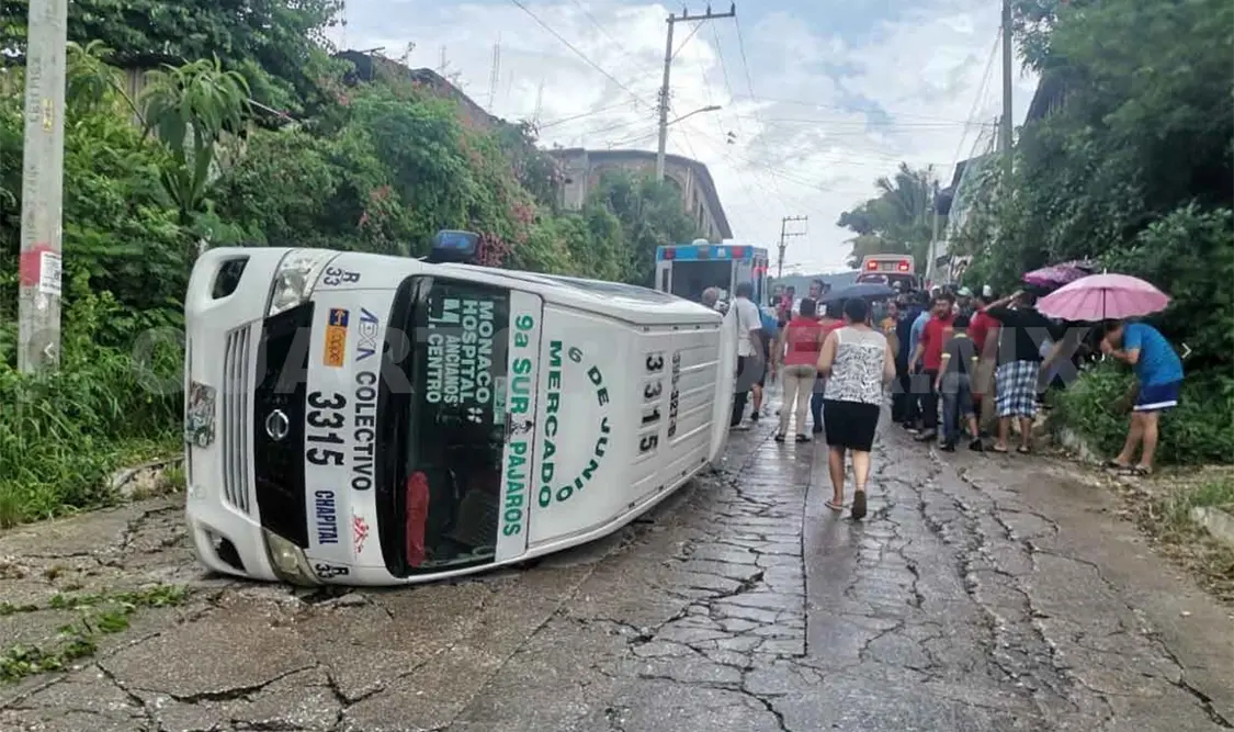Sin embargo, el chofer al descender sobre la rampa tuvo una falla mecánica en los frenos y terminó cayendo en un enorme bache, lo que hizo que la unidad que transportaba a seis pasajeros volcara sobre la cinta rodante.