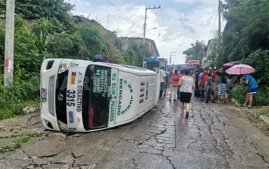 Seis pasajeros heridos, entre ellos una mujer embarazada, quedaron como saldo de una aparatosa volcadura suscitada en la colonia 6 de Junio, ubicada a un costado de Los Pájaros en la zona oriente-sur de la capital del estado.