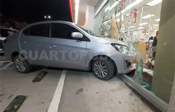De acuerdo con los primeros reportes, el hecho fue registrado alrededor de las 18:40 horas, cuando un automóvil Dodge tipo Attitude, sin placas de circulación, se estrelló contra los ventanales de la Farmacia Guadalajara.
