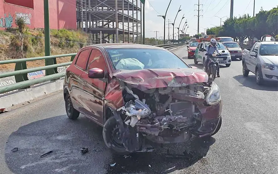 Sin embargo, una mala maniobra provocó que perdiera el control del volante y finalmente se impactara contra las barras de acero de contención, por lo que oficiales solicitaron el apoyo de una unidad de primeros auxilios.