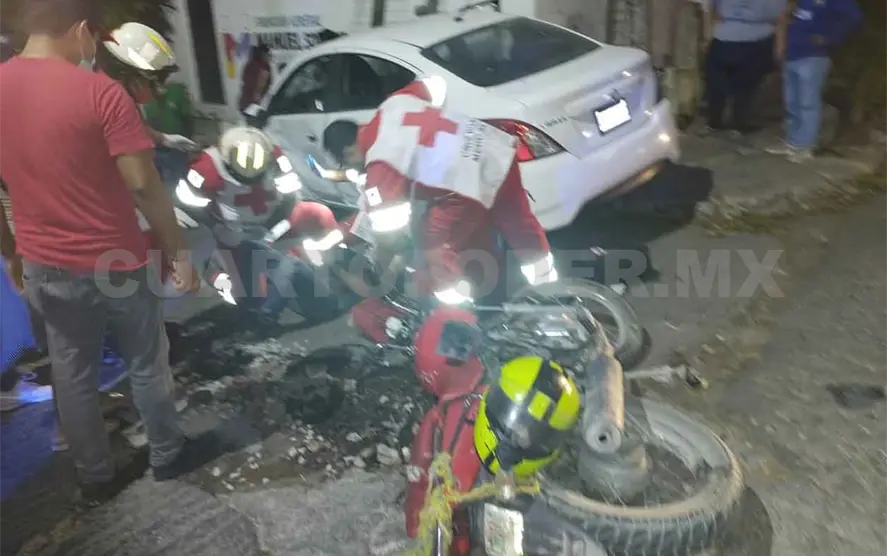 Agentes de Tránsito y Vialidad Municipal informaron que el motorista al parecer no respetó la preferencia y se estrelló contra un automóvil de la marca Nissan tipo Versa, color blanco, con placas de circulación DRU322 C del estado de Chiapas, manejado por Luis Alberto Abarca Flores.