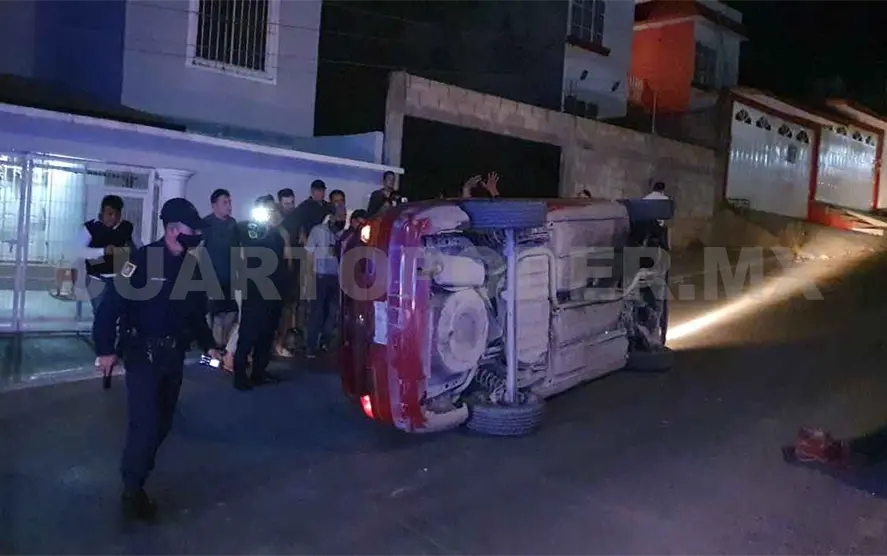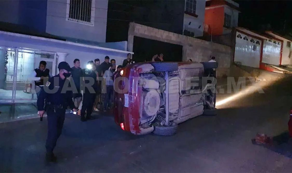 Cuantiosos daños materiales dejó como saldo una aparatosa volcadura sucedida en la colonia Paso Limón, en la capital Tuxtla Gutiérrez la noche del lunes.