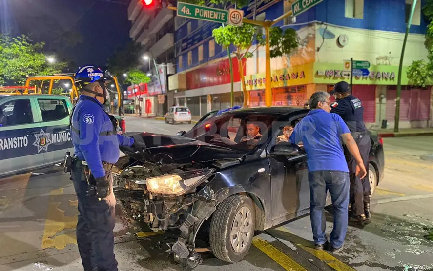 Dos personas resultaron con lesiones debido a un aparatoso accidente de tránsito sucedido sobre la avenida Central y 4ª Poniente, en la zona centro de la capital Tuxtla Gutiérrez durante la madrugada del viernes.