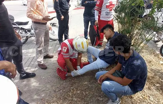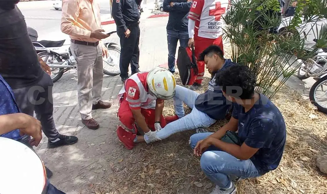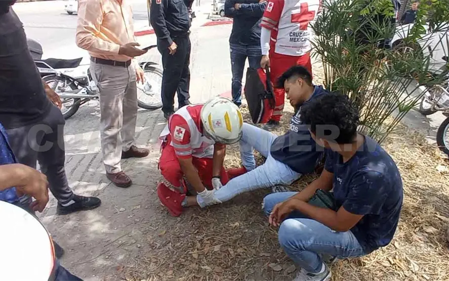 En minutos se constituyeron paramédicos de la Cruz Roja Mexicana, los cuales valoraron al joven y le colocaron un vendaje compreso en la pierna.
