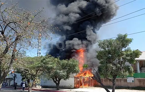 Una bodega propiedad de una empresa agroindustrial que se dedica a almacenar y distribuir café, cacao y algodón para su comercialización, ardió de forma sorpresiva al oriente de la capital del estado, cerca de Tienda Amiga, lo que movilizó a las autoridades.