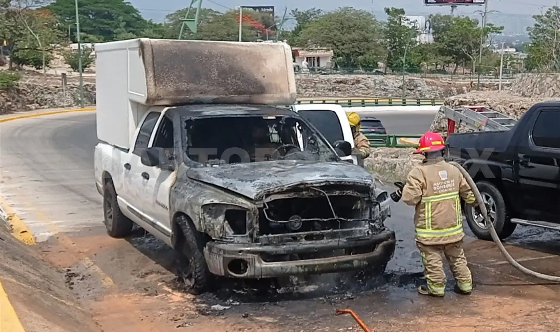 Un probable cortocircuito originó que una unidad de carga se incendiara sobre el libramiento Norte y circuito con el Asta Bandera de la colonia Pomarrosa, en la capital del estado.