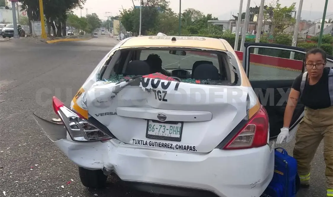 Un ruletero fue impactado por un transporte público en modalidad de colectivo, sobre el bulevar 28 de Agosto y crucero con bulevar Laguitos, en la capital Tuxtla Gutiérrez.