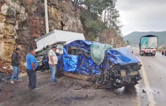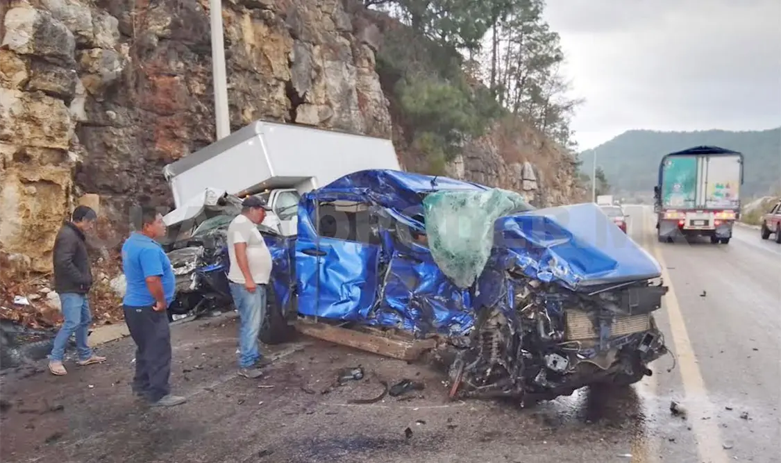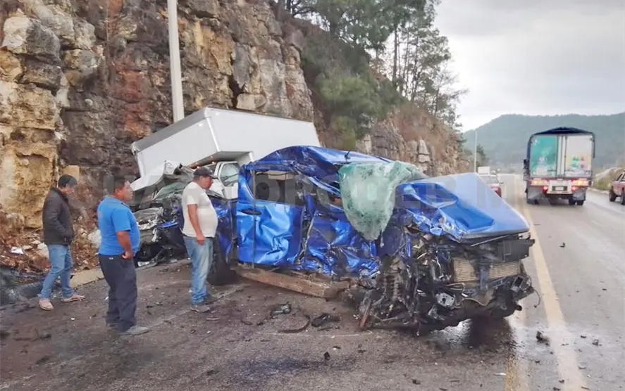 El choque se dio entre un camión de tres toneladas con redilas tipo caja, color blanco, que circulaba hacia San Cristóbal, contra una camioneta Pick up, color azul, que se dirigía a Comitán.