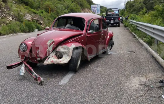 El conductor de un Volkswagen Sedán de color guinda circulaba sobre la carretera rumbo a la ciudad, cuando perdió el control del volante y acabó volcando sobre el lado izquierdo.