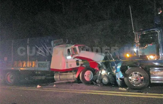 El torton continuó sin control al frente e impactó y arrastró a un Chevrolet tipo Chevy, color gris, con engomado TK2-14-52 del estado de Oaxaca, de cuyo conductor se desconocen sus generales y murió al ser aplastado contra otro camión marca Kenworth, color blanco con rojo y engomado CW-27798.