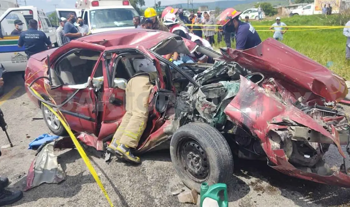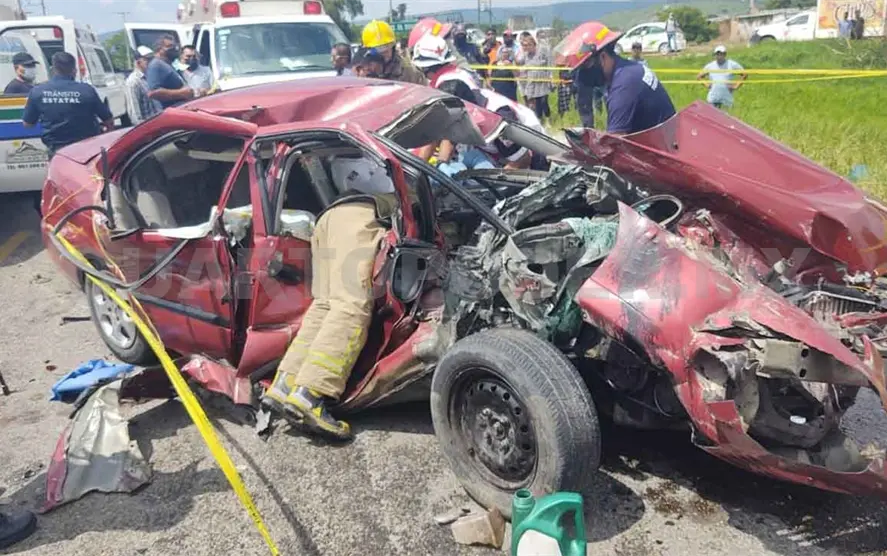 El hecho se suscitó alrededor de las 14:00 horas de este martes. Se supo que el automóvil Nissan tipo Sentra, color rojo, se había impactado de frente contra el camión de la empresa Avimarca, quedando tres personas entre los fierros retorcidos de la unidad particular.