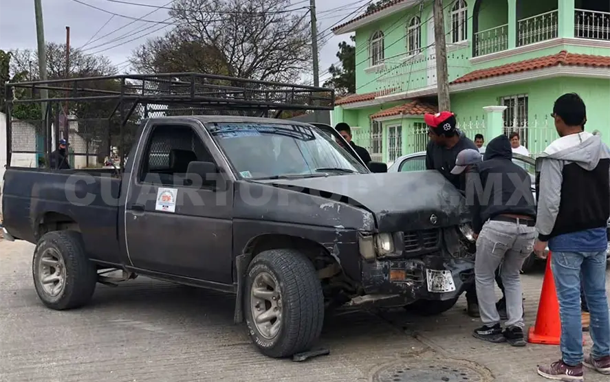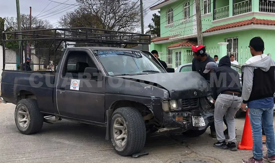 El choque se dio cuando el conductor de una camioneta marca Nissan tipo pick up, color gris, circulaba sobre la calle con dirección al oriente.