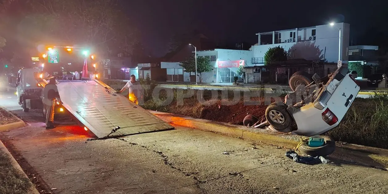 Se dijo que se trataba de una Mitsubishi L200, color blanco, la cual era manejada al parecer a exceso de velocidad, por lo que la persona perdió el control del volante, abandonó la vía de comunicación y terminó dentro del desagüe.
