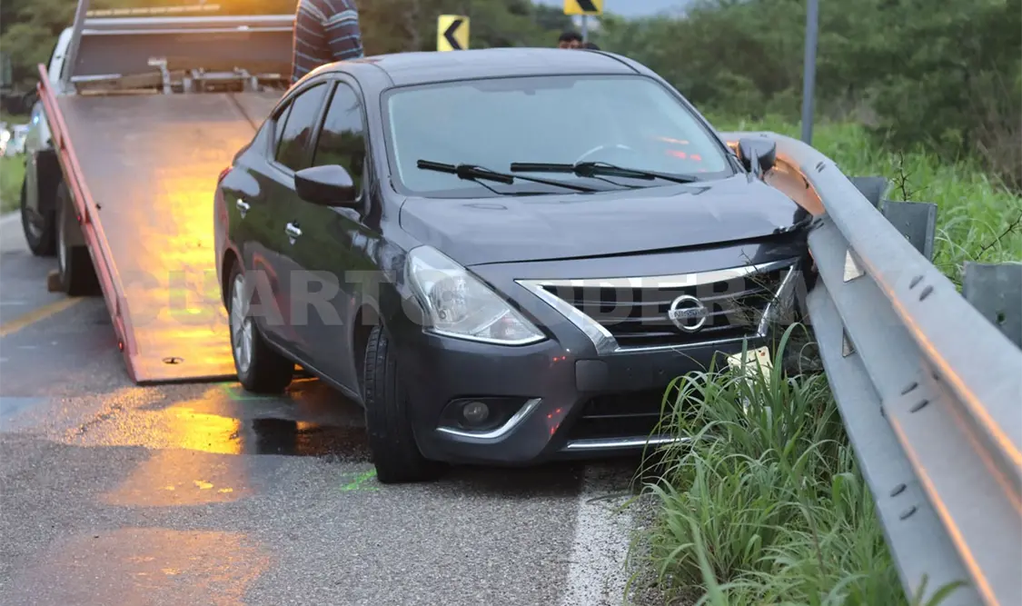 Cerca de las 18:00 horas, personal de auxilio tuvo conocimiento del choque en el tramo carretero Cintalapa-Cárdenas, en el cual se vio involucrado un automóvil Nissan Versa de color gris oscuro que tenía un golpe en el lado izquierdo por impactar con la banda metálica de la vía federal.