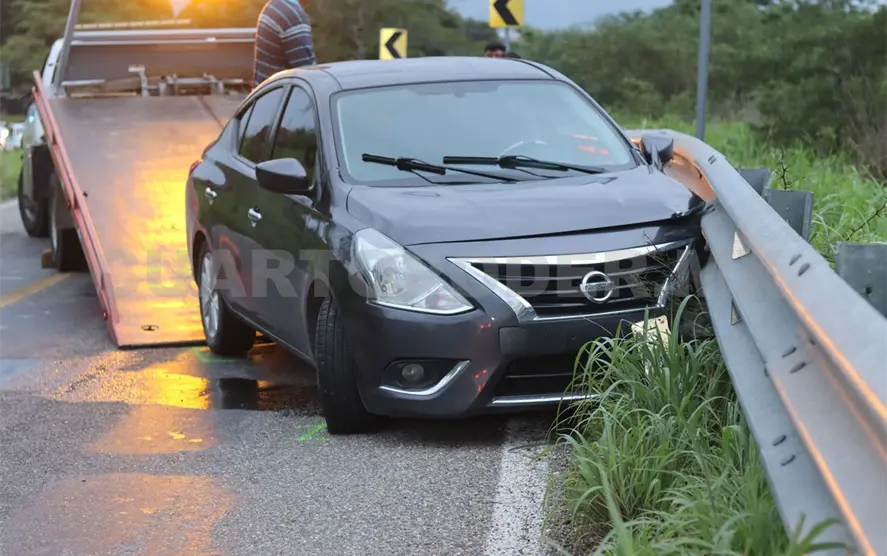 Un vehículo colisionado y una persona con posible crisis nerviosa fueron el saldo de un percance carretero la tarde del martes en el municipio de Cintalapa. Se cree que lo mojado del camino pudo ser una de las causas del percance.