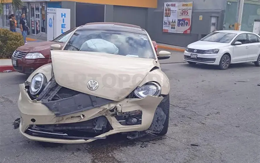 Daños materiales valuados por miles de pesos dejó como saldo un aparatoso accidente de tránsito suscitado sobre la 4a Norte y callejón Brasilito de la colonia El Brasilito.