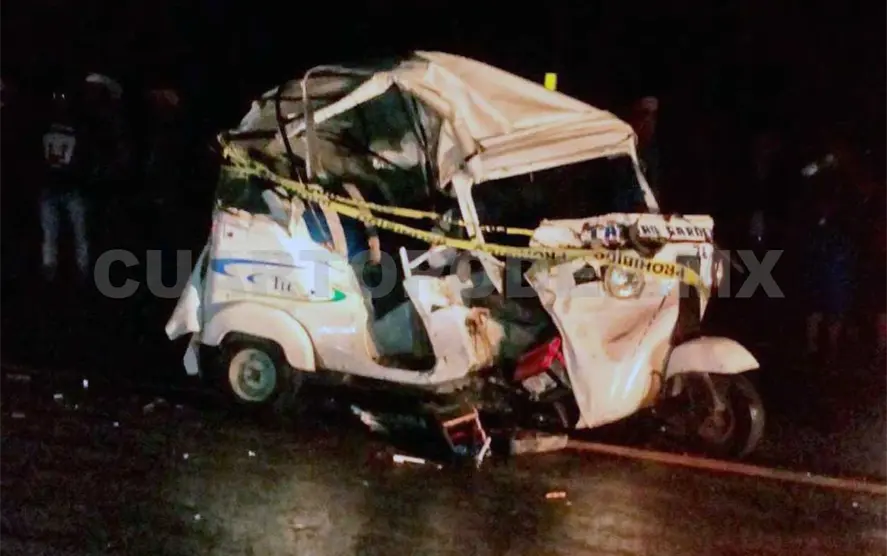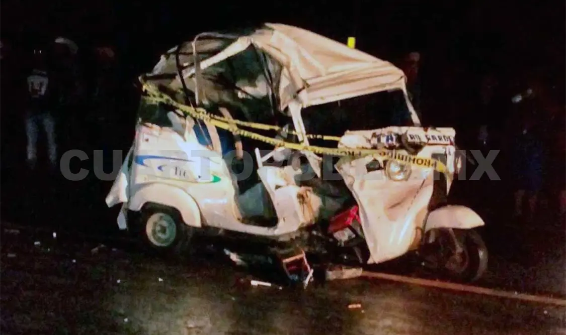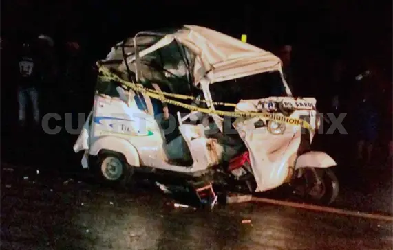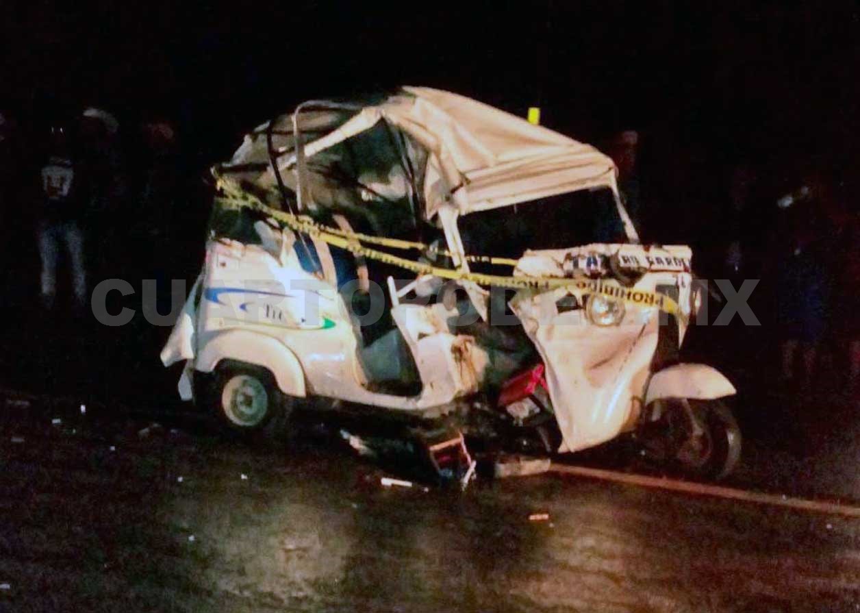 Un hombre de 65 años de edad murió prensado al interior de un mototaxi, dos más resultaron gravemente lesionados, tras incrustarse contra una camioneta.