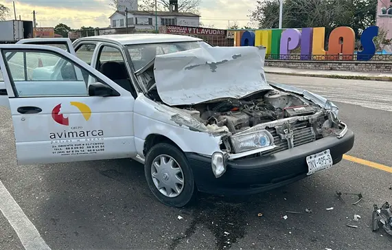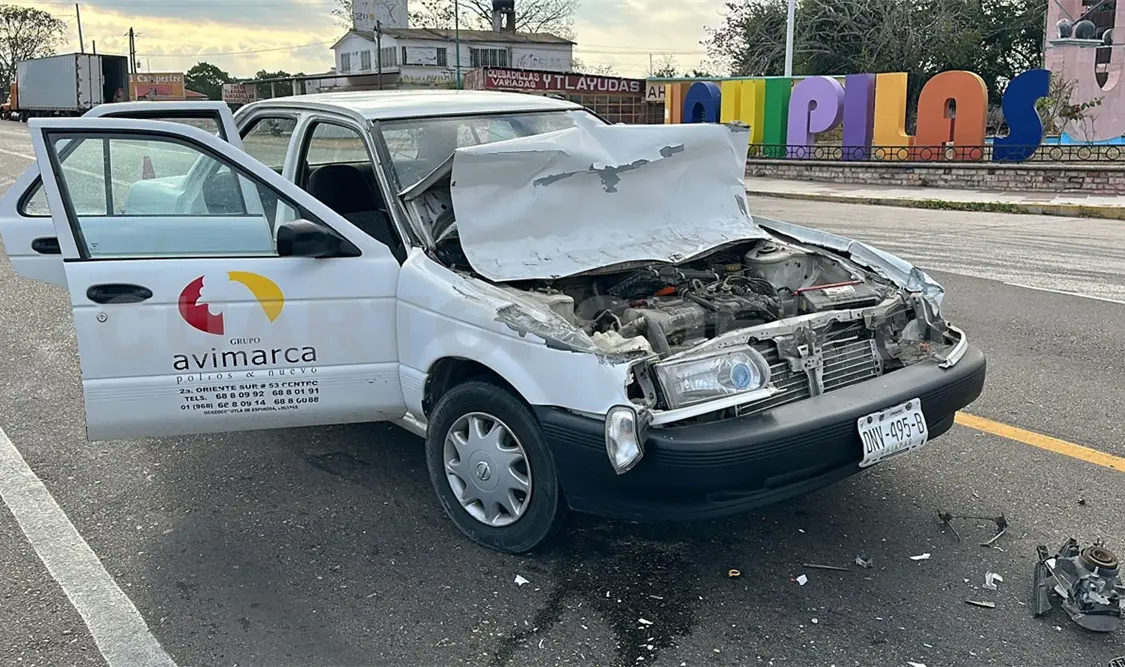 Por lo cual, a su llegada observaron un vehículo Nissan tipo Tsuru color blanco perteneciente a la empresa avícola “Avimarca”, mismo que quedó con el frente destrozado, además de una persona con golpes; metros que más adelante estaba un camión de pasaje.
