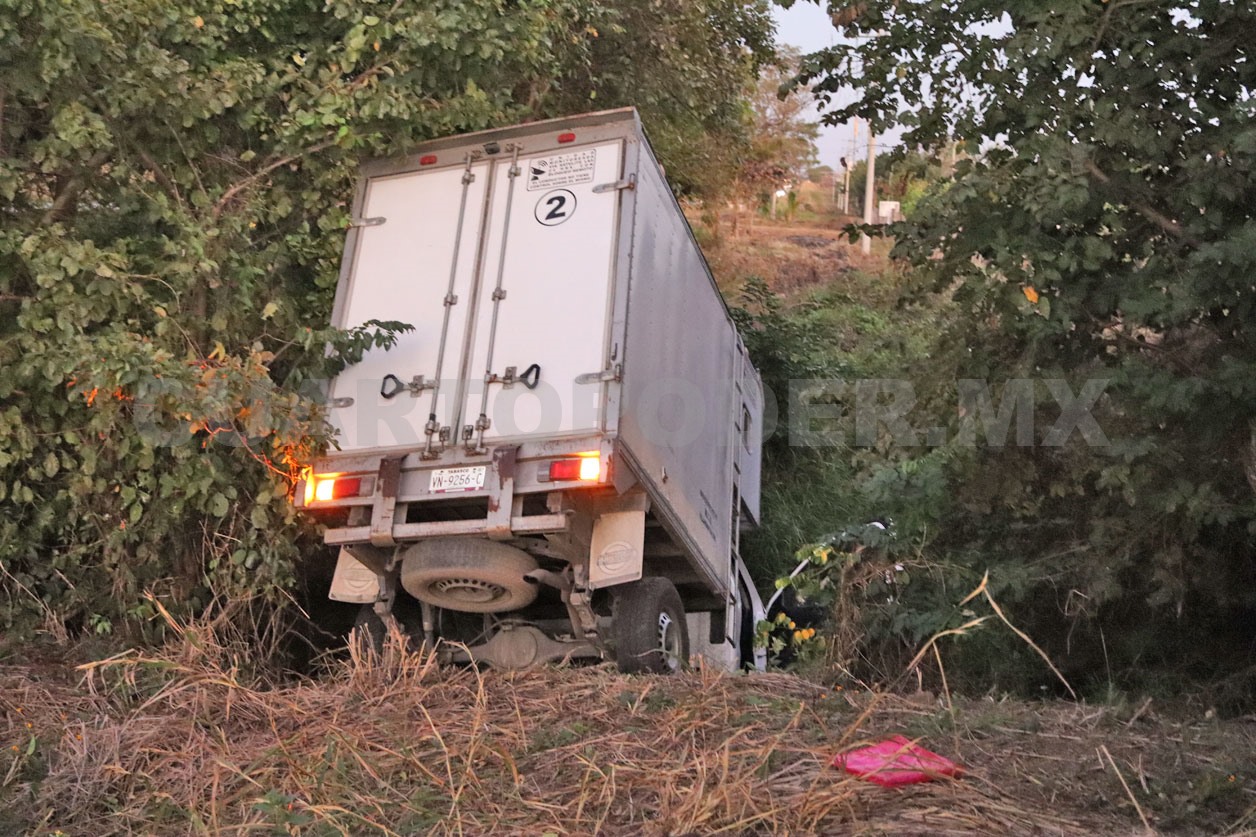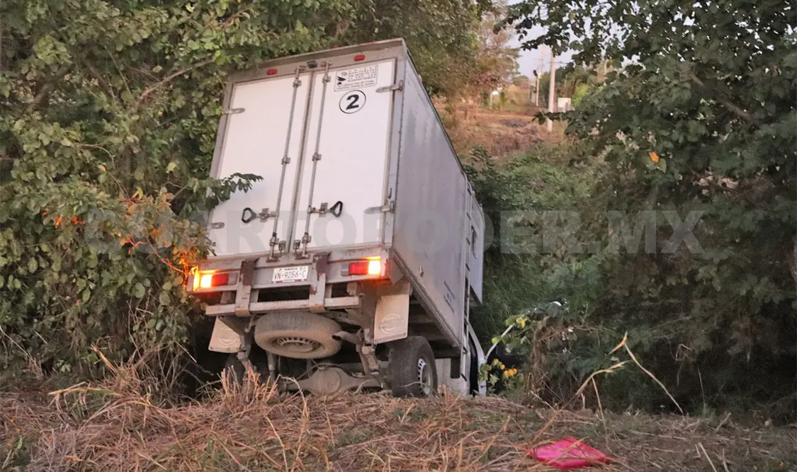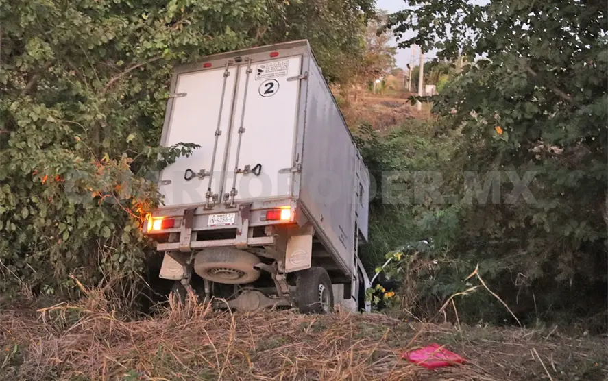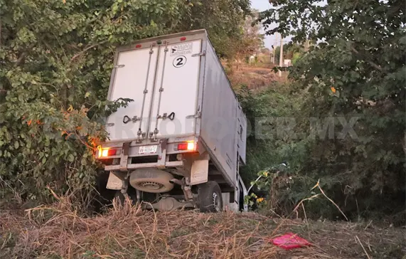 Atascada y fuera de la vía federal fue como acabó una camioneta de reparto dentro del territorio del municipio de Jiquipilas. Todo parece indicar que una presunta distracción hizo que el conductor perdiera el control del volante y se fuera hacia un afluente.