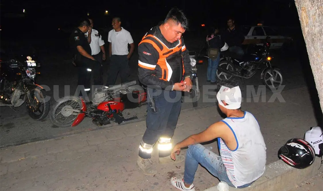 Con serias lesiones terminó un motociclista luego de ser embestido por un vehículo fantasma la noche del lunes sobre la zona norte oriente de la capital chiapaneca. Paramédicos valoraron a la víctima en el lugar.