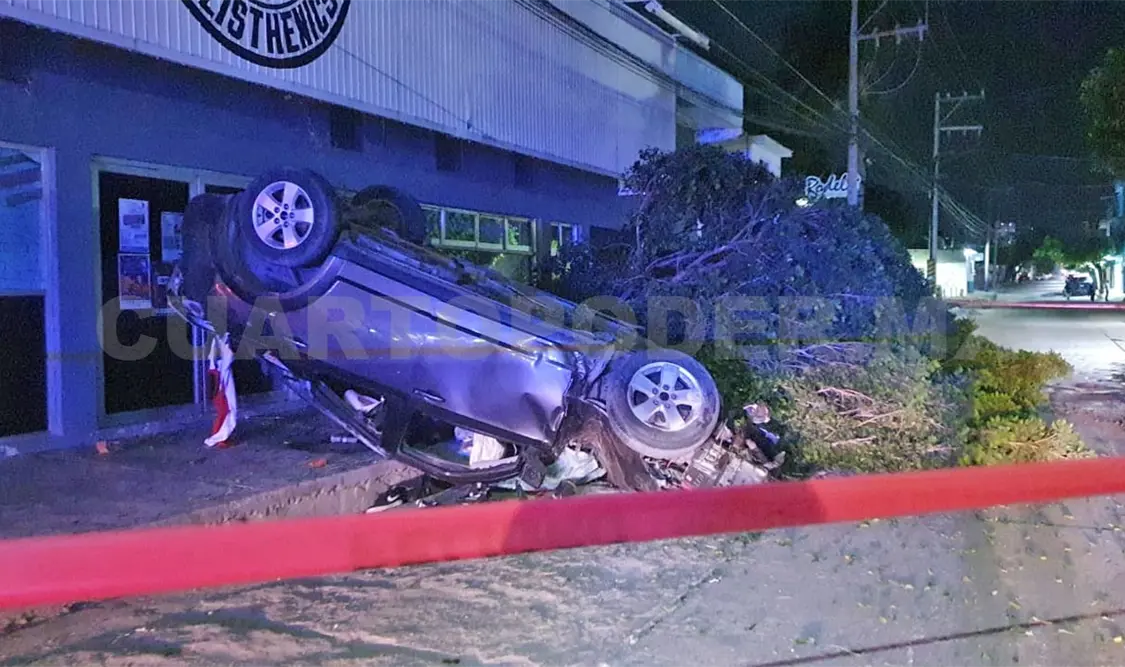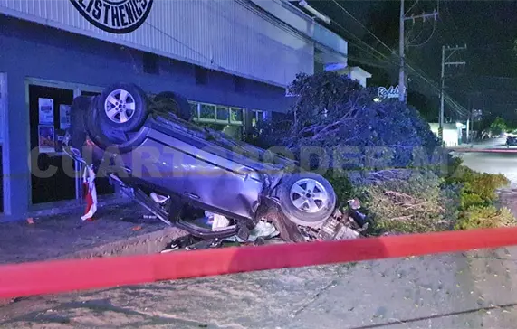 Los oficiales mencionaron que a la unidad motriz particular, al parecer, la iba siguiendo algún automóvil, pues circulaba en sentido contrario y a exceso de velocidad, al grado de salirse de la cinta rodante, estrellarse contra una jardinera y posteriormente derribar un árbol de benjamina.