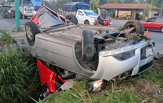 Un fuerte choque que terminó con los dos vehículos involucrados volcados, se registró en el entronque del libramiento Sur Oriente y 7ª avenida Sur -Par Vial- en Tapachula, pero a pesar de ello, los conductores resultaron solamente con crisis nerviosa.