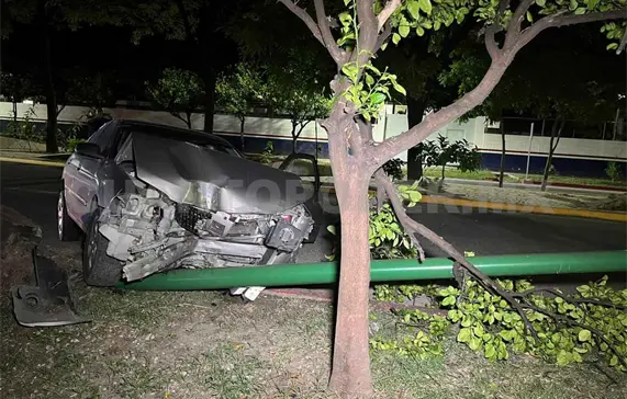 Un acelerado automovilista terminó estrellando su unidad contra una luminaria situada en la calzada Ciudad Deportiva, justo frente al acceso principal del parque recreativo del Oriente en Tuxtla Gutiérrez.
