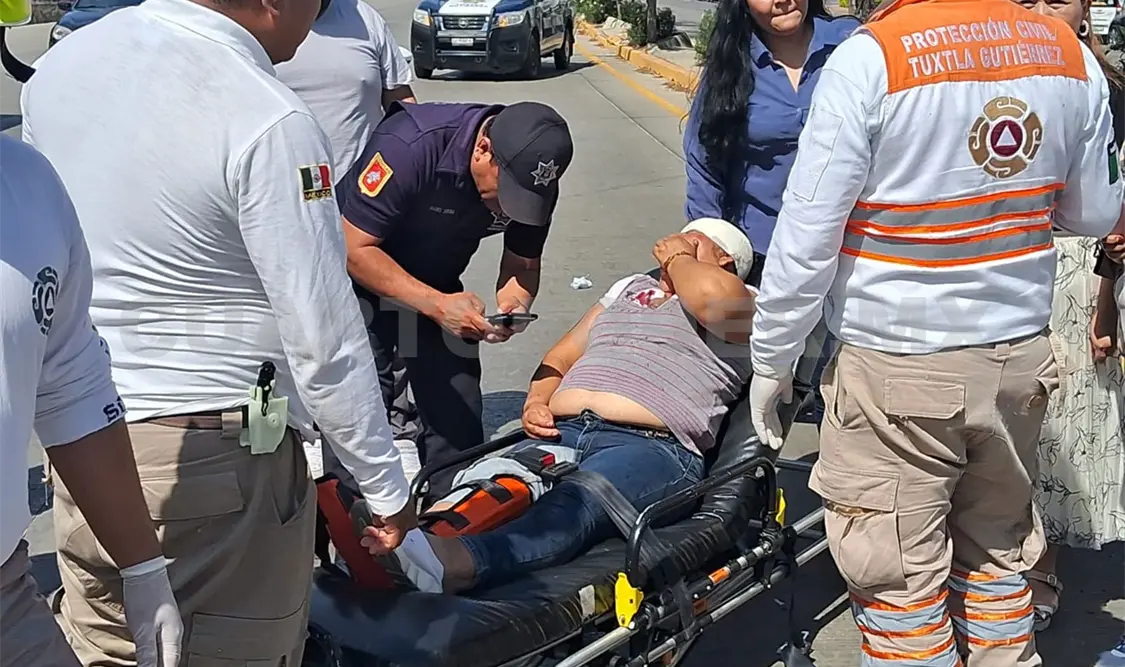 Una persona del sexo femenino de 50 años de edad, acabó con graves lesiones luego de ser impactada por un joven motociclista sobre la carretera Tuxtla Gutiérrez-Chiapa de Corzo, frente a plaza Ámbar, en la demarcación capitalina, ayer por la mañana.