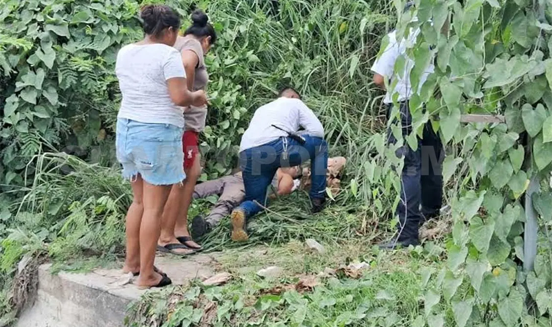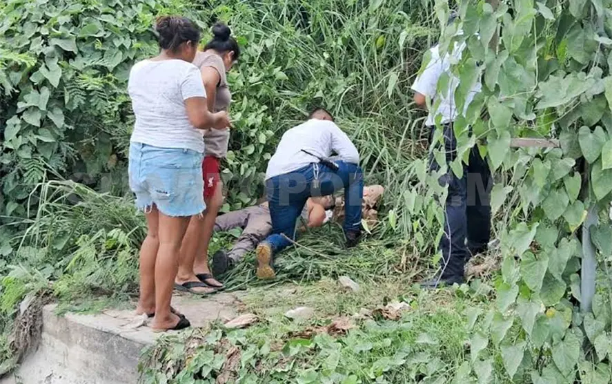 El sujeto pasó entre un señalamiento vial y un poste de concreto, propiedad de la Comisión Federal de Electricidad (CFE), para finalmente quedar sobre una crecida maleza.