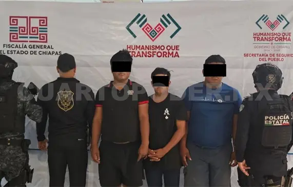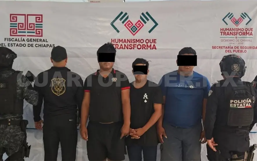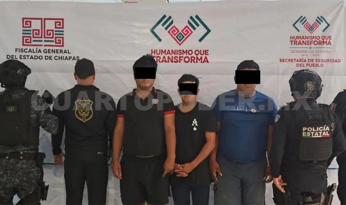 Los presuntos responsables responden a los nombres de José Luis “N”, Fabricio “N” y Paulino “N”, mismos que fueron detenidos en flagrancia en un domicilio ubicado en las inmediaciones de la colonia El Encanto, en el poblado de Puerto Madero.