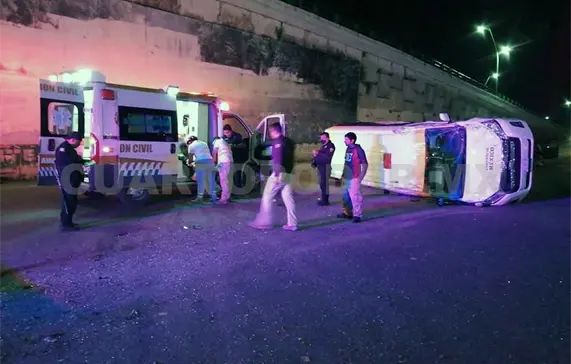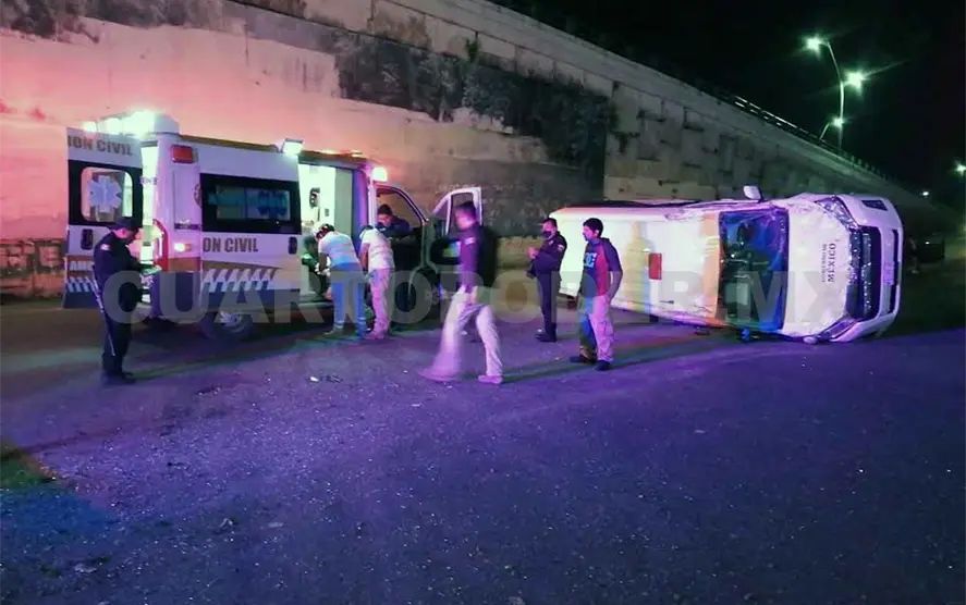 Ante el impacto, la unidad oficial terminó volcada y su conductor sufrió lesiones, por lo que fue auxiliado por paramédicos de Protección Civil, aunque no hubo necesidad de trasladarlo a un hospital.