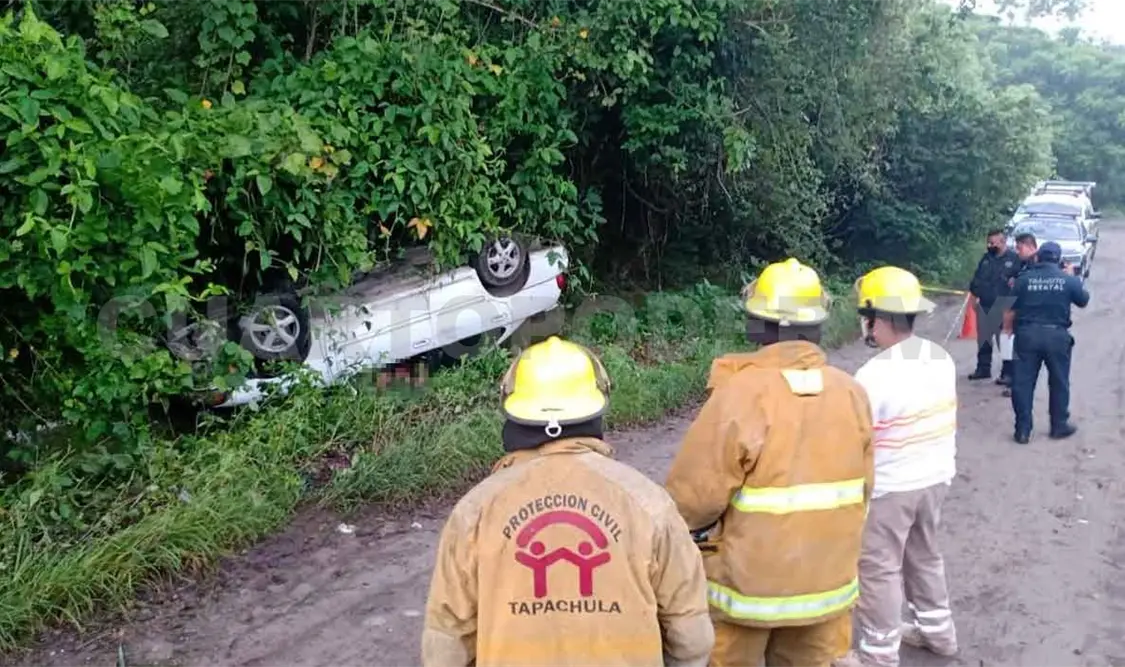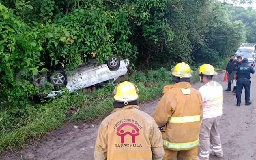 Una persona perdió la vida al quedar atrapada en el interior del vehículo en que se desplazaba, el cual volcó sobre el camino conocido como “El Coyol”, al sur de Tapachula, lo que movilizó a los cuerpos de socorro y de seguridad.