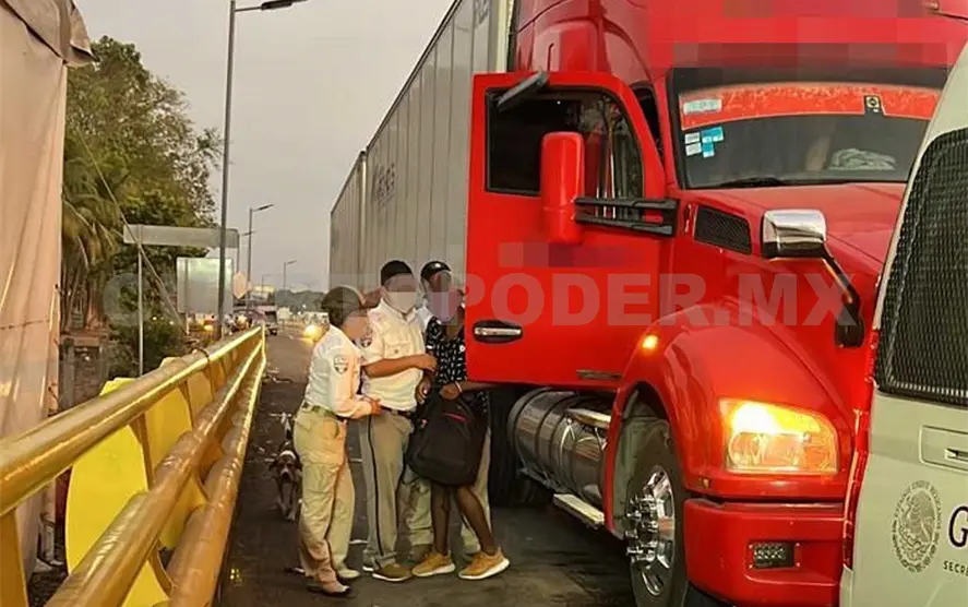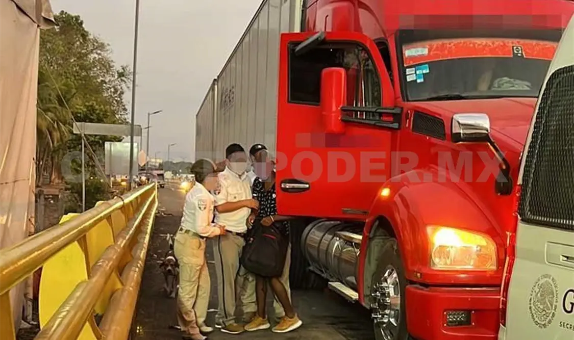 Fue en el puesto de control Viva México que elementos del Instituto Nacional de Migración (INM) y de la Guardia Nacional interceptaron la unidad de color rojo, con doble remolque, el cual al ser revisado encontraron a cinco migrantes originarios de Cuba y dos de la India, además del hondureño que viajaba como copiloto.