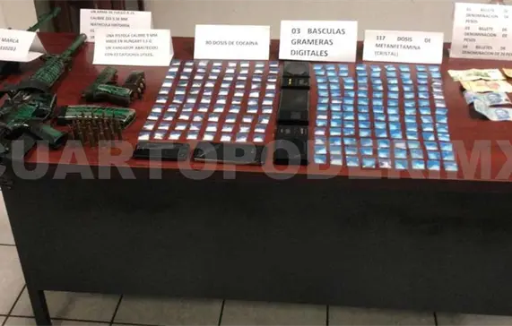 Policías ministeriales detuvieron a un sujeto que tenía en su poder 117 bolsitas de droga sintética metanfetamina y ocho de cocaína, así como dos rifles y una pistola.