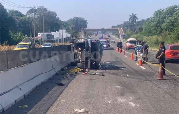 La unidad de la marca Toyota, color negro, se desplazaba de la frontera con Guatemala hacia Tapachula, pero en una curva el conductor perdió el control chocando contra el muro de protección central y a consecuencia de ello terminó volcando.