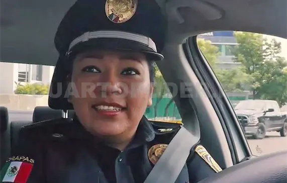 La agente femenil de Tránsito del Estado mueve la palanca de velocidades a la primera, sale de la base Satélite, saluda con una sonrisa al encargado de la guardia en la pluma sur, y con esa amplia sonrisa recorre las calles de Tuxtla.